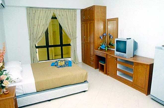 Studio features a seating area and a kitchenette.